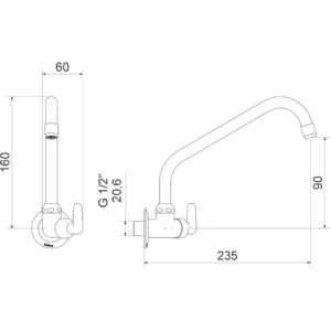Torneira para Cozinha Parede Bica Móvel Uni Meber