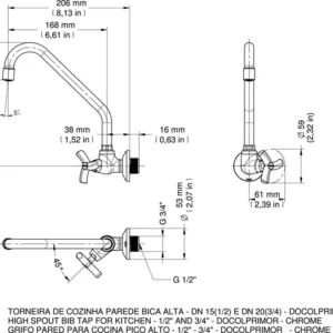 Torneira para Cozinha de Parede 1/2″ e 3/4″ Docolprimor
