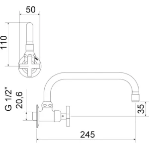 Torneira para Cozinha de Parede Branca Bica U 1164 F34
