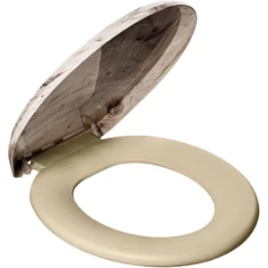 Assento Sanitário Plástico Almofadado, Tampa Efeito Mármore, Cor Bege, Linha Primafer, Atlas.