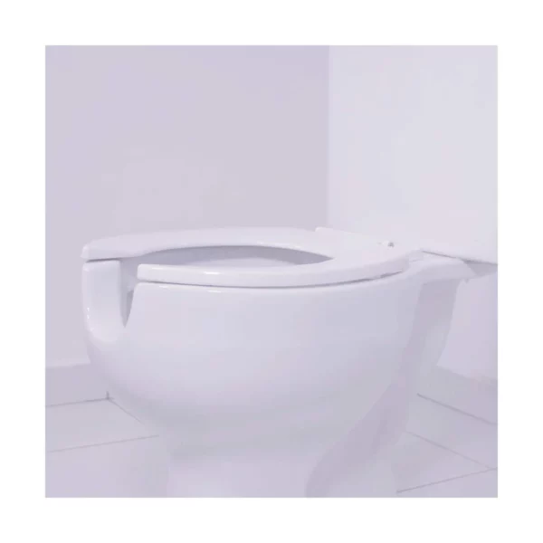 - Assento universal com anel aberto e sem tampa para todas as bacias ovais, em polipropileno, com proteção antimicrobiana Duraguard e articulação de aço inox, higiênico e de fácil limpeza, ultra resistente e com supefície brilhante. Ideal para locais com grande fluxo de pessoas.