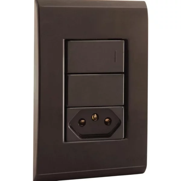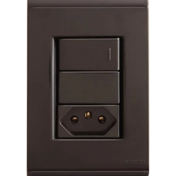 INTERRUPTOR TRAMONTINA LIZ 1 TECLA SIMPLES + TOMADA GRAFITE 57173/064