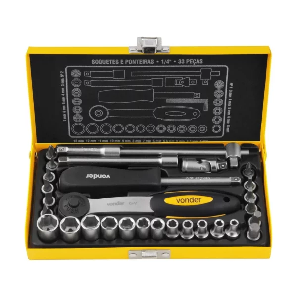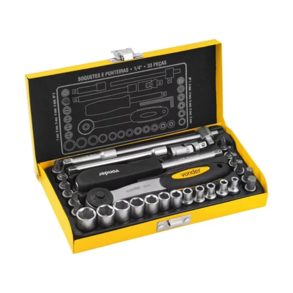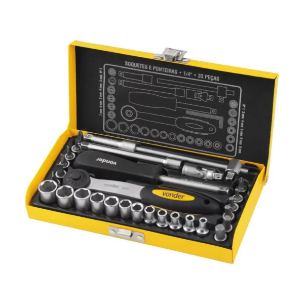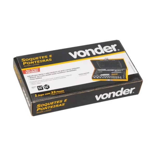 Jogo de Soquetes e Ponteiras, Encaixe de 1/4″, com 33 Peças, Vonder Vdo773