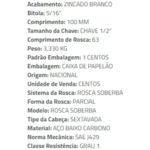 Parafuso Sext Rosca 5/16×100