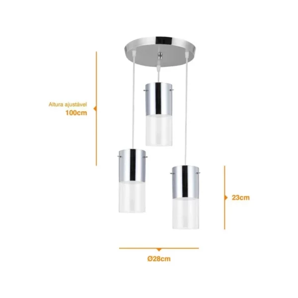 Pendente em Vidro Trabalhado Clássico 3 Lâmpadas E14 Transparente
