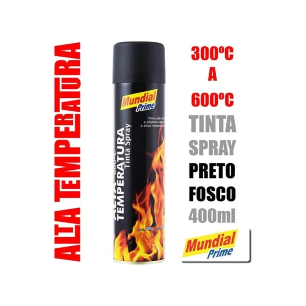 Tinta Spray Preto Fosco Alta Temperatura 400ml Até 600º Mundial Prime