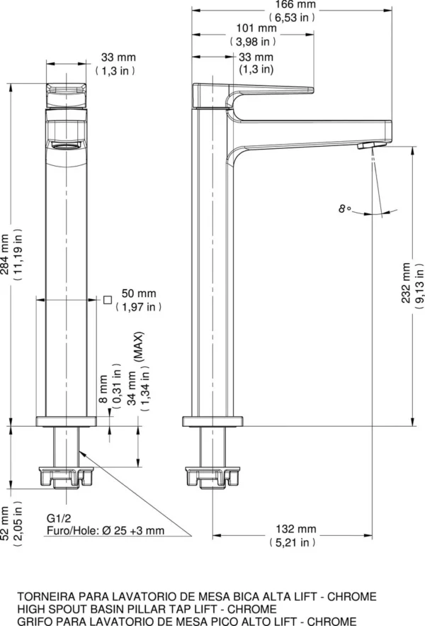 Torneira Doc Lav Lift Mesa Ba Cr 00872006