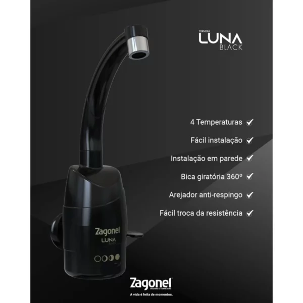 Torneira Eletrica Zagonel Luna 4t Preta 5500w 220v