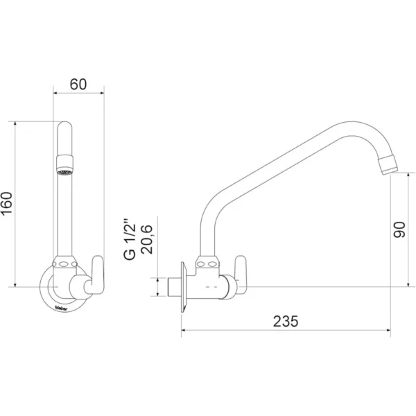 Torneira para Cozinha Parede Bica Móvel Uni Meber