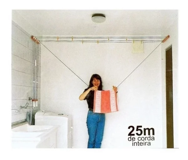 Varal Parede Pratico Madeira C/corda